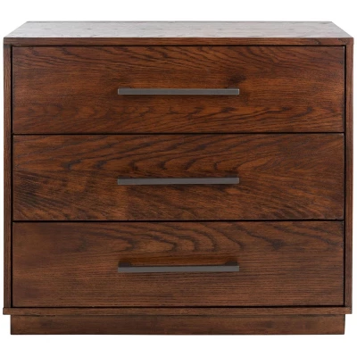 Introducing the Mallory three drawer nightstand in a rich dark brown finish, designed to bring both style and functionality to your bedroom space. Crafted from a combination of mdf, oak veneer, rubberwood, plywood, and hardwood, this piece merges natural beauty with practical design. Its spacious drawers provide ample storage for your bedside essentials, while the warm tone enhances any decor. Enjoy the smooth finish and sturdy construction that promises to complement your room with a touch of elegance. Perfectly sized to fit snugly beside your bed, the Mallory nightstand offers practicality without sacrificing style. Elevate your living space with a piece that speaks the language of comfort and convenience.