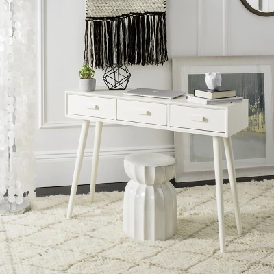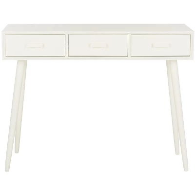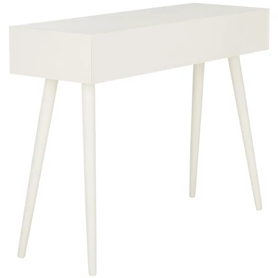 Elevate your home decor with the Safavieh Albus Console Table, a masterfully crafted piece designed to blend seamlessly into modern interiors. Featuring a sophisticated Mid-Century frame in an elegant antique white finish, this table adds a sense of depth and character to any hallway, entryway, or living space.