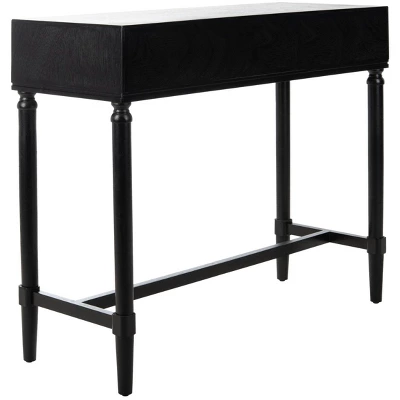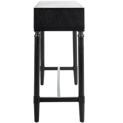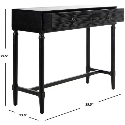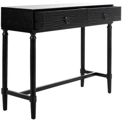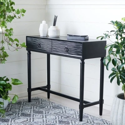 Bring the timeless elegance of French country living into your home with the Safavieh Aliyah 2-Drawer Console Table. A standout piece in the Aliyah collection, it beautifully balances rustic textures with a refined black finish, offering a modern interpretation of Riviera-inspired sophistication.