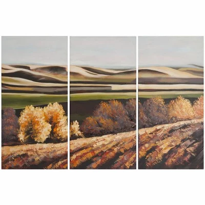 Elevate your interior design with the Safavieh Harvest Dreams Triptych, a stunning celebration of nature’s transition. This three-piece set captures the emotional essence of autumn through dramatic brushstrokes of red, orange, and gold, contrasted with subtle pastel hues. Each panel is meticulously crafted to bring a contemporary reflection of the outdoors into your living space, providing an sophisticated focal point that resonates with warmth and artistry.