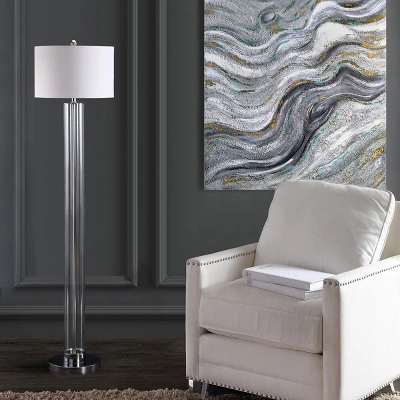 Elevate your interior design with the Safavieh Lovato Floor Lamp, a centerpiece of the renowned Safavieh lighting collection. Standing at an elegant 64 inches, this lamp harmonizes a sleek chrome finish with a transparent acrylic body, creating a modern silhouette that complements both contemporary and classic decors. Whether illuminating a cozy reading nook or adding a sophisticated glow to your living room, the Lovato series is designed to be a functional statement piece that transforms the atmosphere of your home.