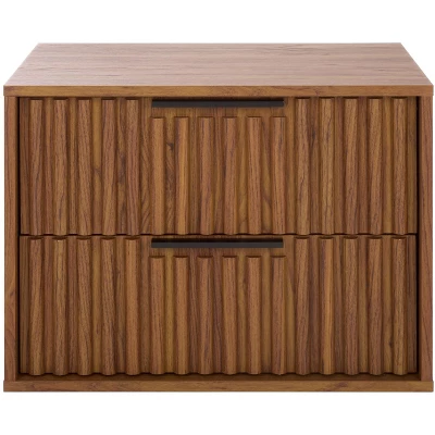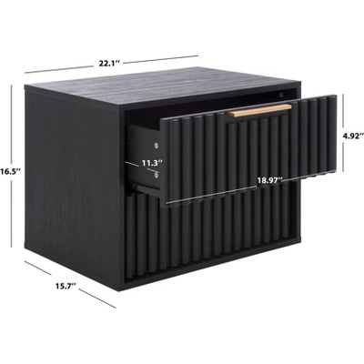 Enhance your bedroom with the Safavieh Lylia 2-Drawer Floating Nightstand, a premier addition to Safavieh’s collection of modern, space-saving furniture. This wall-mounted unit combines a sophisticated walnut wood finish with sleek black metal handles, offering a minimalist yet warm aesthetic that serves as a stunning centerpiece for any contemporary home.