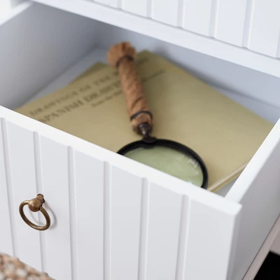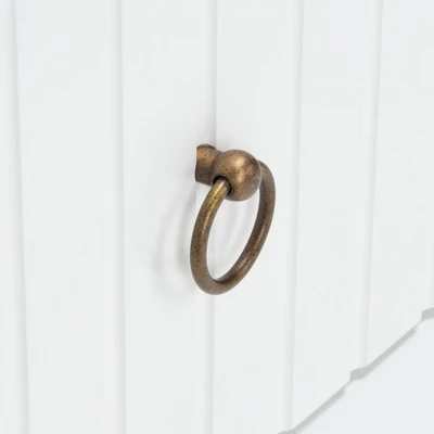 - Artistic Hardware: Equipped with antiqued brass ring pulls that provide a stunning metallic contrast against the white wood grain.